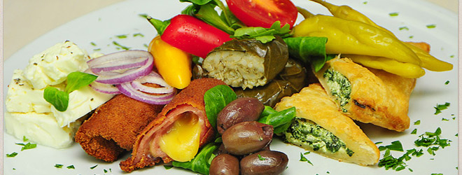 | 08 | Dolmadakia Weinblätter gefüllt mit Reis, warm serviert, dazu Tzatziki. |